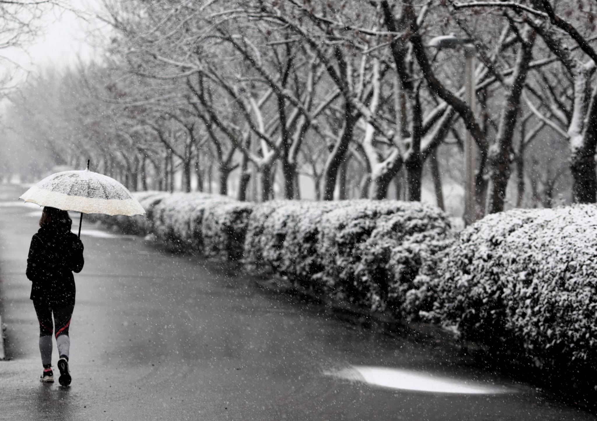 Una mujer pasea con paraguas con nieve tras el paso de la borrasca Filomena, en Madrid (España), a 7 de enero de 2021 - Eduardo Parra / Europa Press
