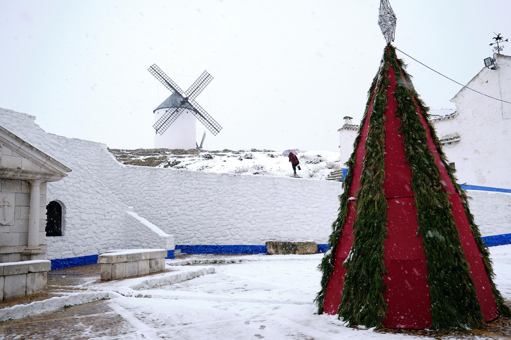 Una gran nevada cae sobre Campo de Criptana, en Castilla-La Mancha (España) a 7 de enero de 2021 - Rey Sotolongo / Europa Press