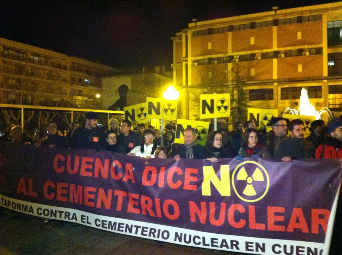 Tras la principal pancarta, que llevaba por lema 'Cuenca dice no al cementerio nuclear' y con consignas como "no queremos cementerio", los conquenses han rechazado la decisión del Consejo de Ministros por la que el ATC se construiría en Villar de Cañas.