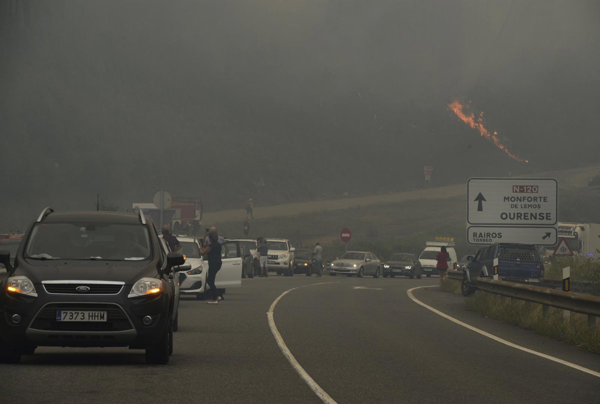 Archivo - Conductores de coches atraviesan los incendios de un fuego en el municipio de Ribas de Sil, en la parroquia homónima, muy cercana a Rairos, a 6 de septiembre de 2021, en Ribas de Sil, Lugo, Galicia (España). - Rosa Veiga - Europa Press - Archivo