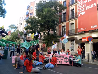 Medio centenar de personas cortan Ferraz, frente a la sede del PSOE, para exigir "emergencia climática"