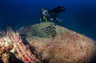 Red de arrastres hallada en el fondo marino frente a la costa de Almerimar en El Ejido (Almería). - OCEANA