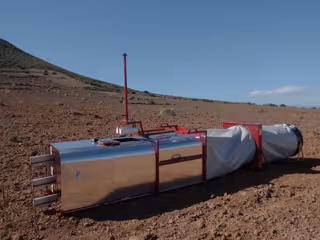 La estructura es telescópica y se completa el conjunto con un sistema que permite a las paredes adaptarse a esta estructura, utilizando patines que deslizan sobre un mientras que la recogida y análisis de las muestras se realiza con dos sensores.
