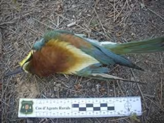 Miembros del cuerpo de Agentes Rurales de la Generalitat de Cataluña han pillado 'in fraganti' a un apicultor relacionado con una importante empresa apícola de Aragón mientras manipulaba veneno para matar a abejarucos, un tipo de pájaro protegido que come abejas, en diversas zonas de las comarcas del Segrià y La Noguera (Lleida).