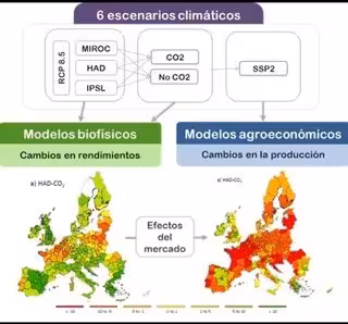 De esta manera, ha añadido que han estimado los efectos en términos de superficies de cultivo, producciones, precios y comercio agrario. Además, el estudio contempla varios escenarios potenciales en 2030 que combinan el escenarios socioeconómicos, escenarios de emisiones de gases de efecto invernadero, con las proyecciones climáticas de tres modelos de circulación global y la fertilización carbónica, es decir, grado de los efectos que el incremento del CO2 atmosférico tendrá en la productividad de los cultivos.