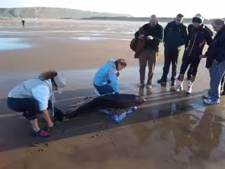 Miembros del Cepesma, con la colaboración de particulares, han rescatado con vida a un ejemplar de 'cachalote pigmeo' en la playa de San Juan de Nieva, en el concejo de Castrillón (Asturias).