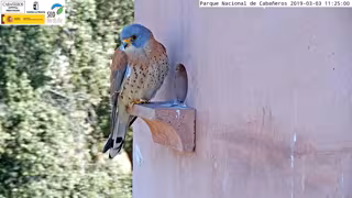 En este momento, los cernícalos están recién llegados de su viaje migratorio en el corazón de África transahariana para iniciar su período reproductor. La primera tarea de la pareja es adecuar el nido antes de comenzar la puesta. Se han dispuesto dos cámaras: una en el exterior y otra en una caja-nido habilitada para los cernícalos. En estos primeros momentos es habitual que los adultos no permanezcan en el nido de continuo, por lo que en algunas ocasiones sólo se observa el nido vacío, o a los adultos descansando posados en la fachada del "primillar".