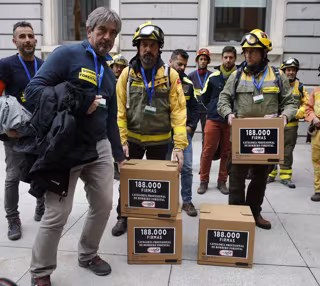 Archivo - Bomberos forestales acuden a registrar las 188.00.000 firmas recogidas para el reconocimiento de su categoría profesional. - Eduardo Parra - Europa Press - Archivo