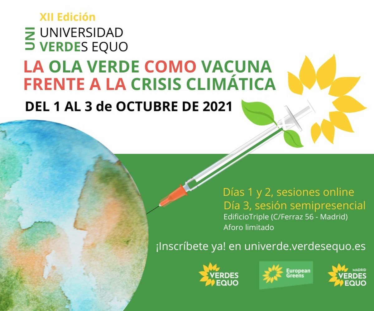 Verdes Equo debatirá este fin de semana sobre los retos de la crisis ecosocial en el XII 'Universidad Verde' que organiza este partido bajo el título 'La Ola verde Como Vacuna Frente a la Crisis Climática'.