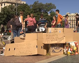 Los jóvenes que han pasado la noche en la plaza Cataluña de Barcelona mantendrán de forma "indefinida" su 'Acampada por la dignidad', para protestar contra los recortes y para reclamar justicia económica y social y una política sin corrupción.