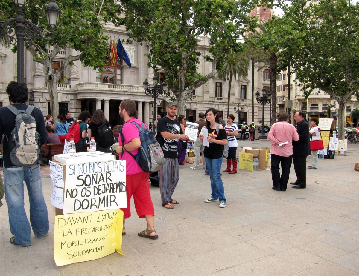 Unas decenas de personas continúan este miércoles instalados en la plaza del Ayuntamiento de Valencia para mostrar a la sociedad su "indignación" ante la situación y su "preocupación por el futuro que nos espera. Por el momento, no está claro el periodo que van a permanecer acampados porque hay diferentes intenciones según las ciudades en las que se secunda este movimiento, por lo que el tiempo de estancia es "indeterminado por el momento", porque "no queremos que esto se acabe el domingo", han declarado.