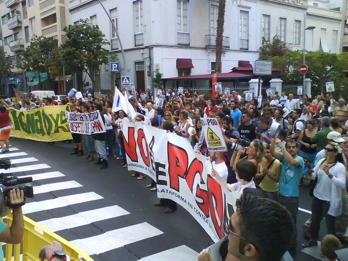 Alrededor de medio millar de personas pertenecientes a la Plataforma Vecinal Contra el PGO y al Movimiento 15M han decidido unir sus fuerzas para expresar su rechazo a la constitución del nuevo Ayuntamiento de Santa Cruz de Tenerife, que durante los próximos cuatro años pasará a estar gobernado por la coalición formada por CC y PSC-PSOE, bajo la Alcaldía del nacionalista José Manuel Bermúdez.