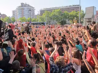 Los 'indignados' tienen previsto celebrar a partir de las 20 horas en el mismo lugar una asamblea en la que decidirán si se quedan a dormir ante las torres de La Caixa.
