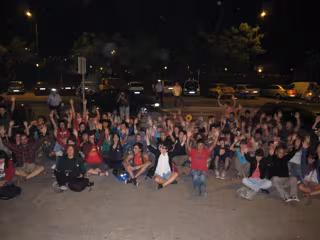 Alrededor de un centenar de personas del llamado '15M' han protagonizado esta medianoche una sentada frente al hotel donde se concentran los 'populares' murcianos, como es tradicional, para denunciar, al grito 'Valcárcel, chorizo, no hay pan', el proceso electoral, "al que llaman democracia y no lo es".