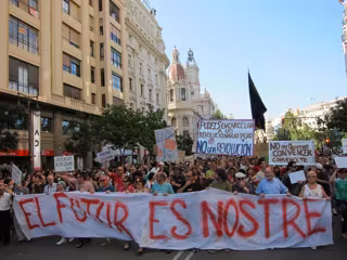 Al inicio de la manifestación, uno de los portavoces de Acampada Valencia ha celebrado que la sociedad esté "despertando" tras 40 años "de sueño, o más bien de pesadilla" y se está levantando contra medidas como el Pacto del Euro o la reforma laboral, que ponen en peligro su futuro.