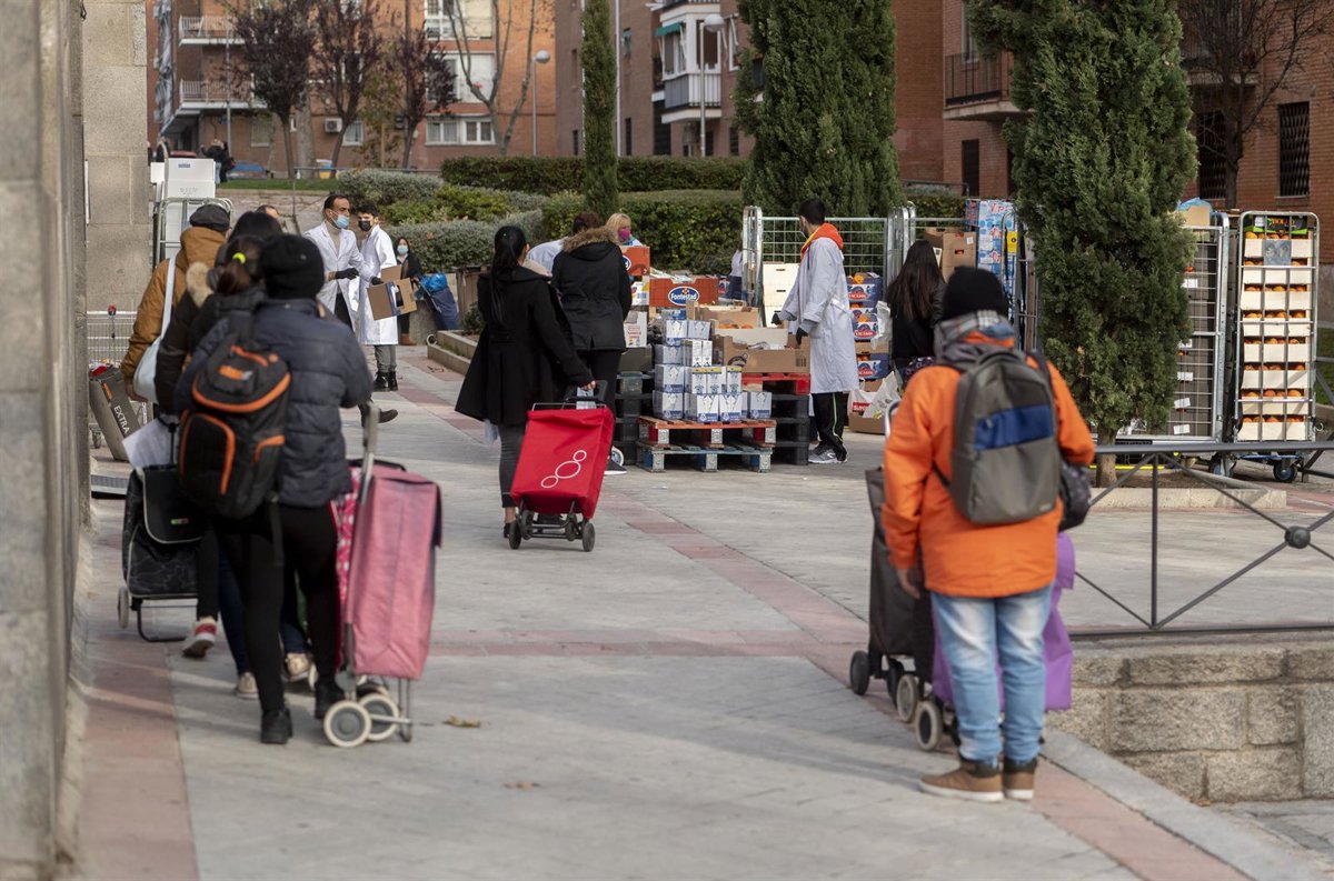 Archivo - Varias personas hacen cola para recibir alimentos de la Fundación Madrina, a 29 de diciembre de 2021, en Madrid, (España). Esta es una de las donaciones a colectivos vulnerables que está llevando a cabo la Fundación Madrina en Navidad, como un - Alberto Ortega - Europa Press - Archivo