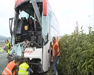 El accidente tuvo lugar en el kilómetro 173,9 en sentido Bilbao, cuando el camión colisionó por detrás con el autobús, lo que obligó a cortar la circulación en la autovía --entre los puntos kilométricos 173,9 y 177,0-- y a desviar el tráfico, aunque a media mañana se restableció la circulación por uno de los carriles.