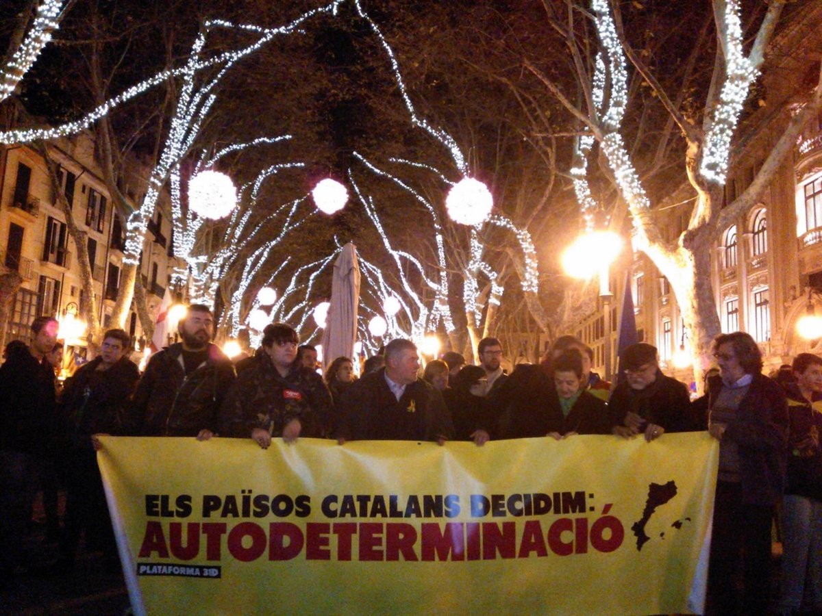 Unas 4.000 personas se han manifestado en Palma a favor de los Països Catalans, en un acto que conmemora la entrada hace 784 años en la capital balear de las tropas del Rei En Jaume y más de siete siglos de la celebración de la Festa de l'Estendard, según ha informado la organización convocante, la Plataforma 31D.