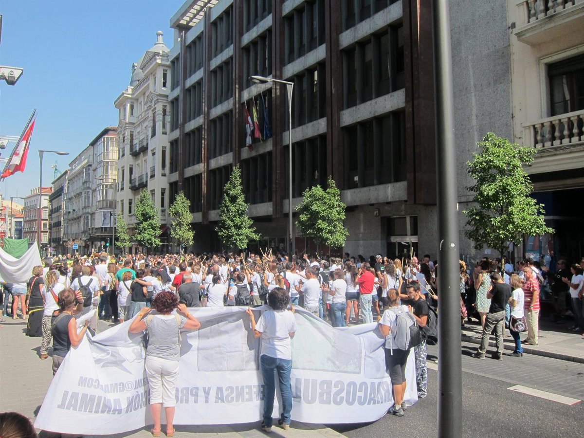Unas 500 personas de toda España han viajado en diez autobuses contratados por el Partido Animalista (Pacma) con el objetivo de manifestarse este domingo en Tordesillas y posteriormente frente a la Delegación Territorial de la Junta en Valladolid para exigir el fin de la fiesta del Toro de la Vega.