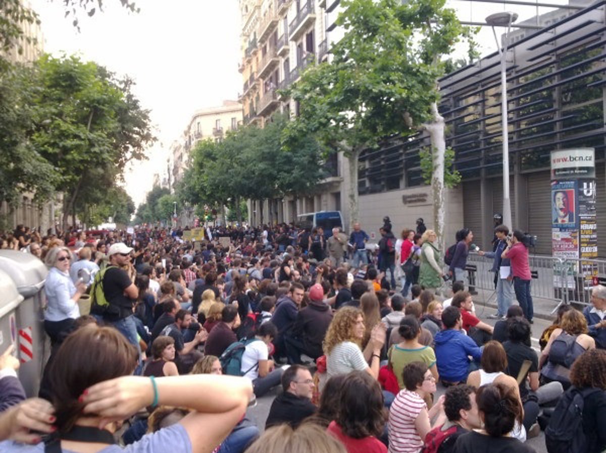 Unos 600 ciudadanos 'indignados' del movimiento del 15-M, según cifras de la Guardia Urbana, se han concentrado frente a la sede de la conselleria de Interior para exigir la dimisión de Felip Puig por los incidentes en el intento de desalojo la plaza Catalunya la semana pasada.