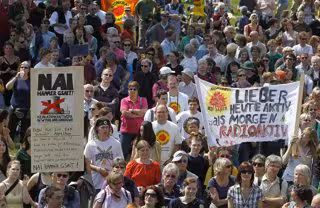 El acto central se celebró en el Puente de Europa, en la localidad de Kehl, donde los concentrados --700 según la Policía francesa y un millar según los organizadores-- corearon consignas en francés y alemán en contra de las nucleares.