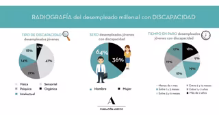 Así, según se extrae del estudio, la carencia formativa es una de las principales causas de desempleo pues el porcentaje de menores de 25 años con discapacidad en desempleo que no ha superado la ESO es del 64,3%. En este sentido, sólo el 8,2% de los jóvenes con discapacidad desempleados cuentan con estudios universitarios, casi la mitad que el resto de los jóvenes (17,2%).