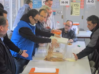El representante sindical del metro, Pere Ramon, ha dado a conocer los resultados de la votación a las 13.25 horas --hora y media después de cerrar las urnas--, en la que han participado 2.324 trabajadores de los 3.370 que conforman la plantilla: 1.735 de ellos --el 74,66%-- ha votado por aceptar la propuesta de TMB y desconvocar el paro; 574 --el 24,70%-- por rechazar la propuesta y mantener la huelga; 13 --el 0,6%-- en blanco, y ha habido 2 votos nulos --el 0,08%--.