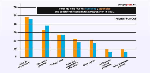En concreto, un 33 por ciento de los españoles considera esencial para la movilidad social la educación y un 27 por ciento, el trabajo duro, frente al 22 por ciento que da la máxima importancia a los contactos sociales y el 10 por ciento, al origen familiar.