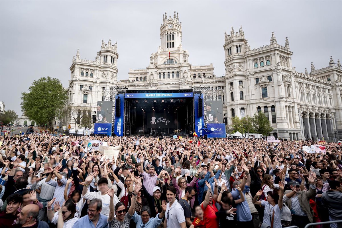 Cientos de personas durante la cuarta edición de la Fiesta de la Resurrección, en la Plaza Cibeles de Madrid, a 11 de abril de 2026, en Madrid (España). - A. Pérez Meca - Europa Press