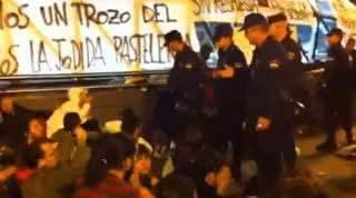 Además, colgaron de la entrada del intercambiador de Sol una gran pancarta en la que llamaban a concentrarse a las 12 horas de este martes en solidaridad con los detenidos tras la manifestación organizada por 'Democracia Ya' del pasado domingo.