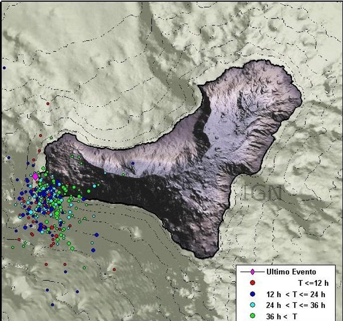 La sismicidad correspondiente al proceso magmático activo en El Hierro mantiene un bajo nivel de actividad y se da un menor crecimiento en las deformaciones, tal y como se desprende del informe enviado a la dirección del Plan de Protección Civil por Riesgo Volcánico (Pevolca) por parte de los científicos del Instituto Geográfico Nacional (IGN).