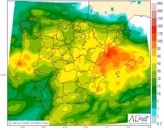 El día de mayor cantidad de precipitación será el lunes 22, con chubascos fuertes y generalizados en Baleares y buena parte de la Península, excepto en el cuadrante suroccidental y el extremo noroeste peninsular y Pirineos donde serán de menor cuantía.