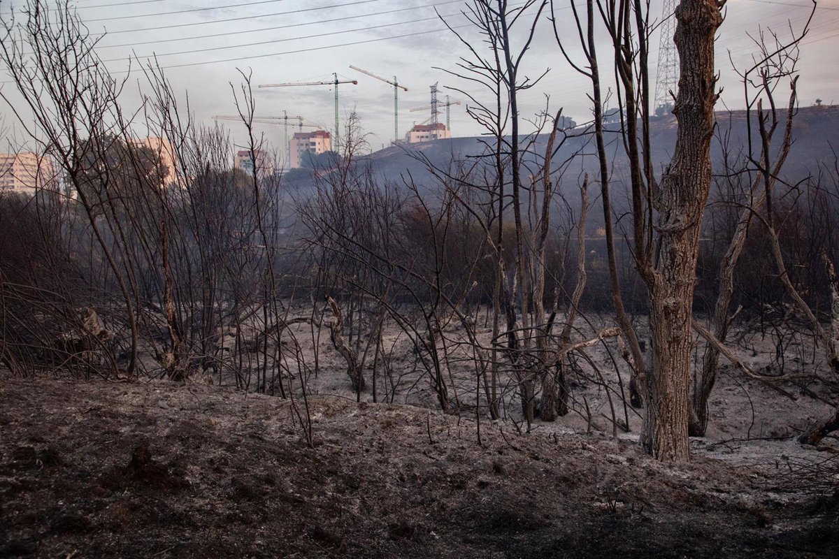Campo quemado por el incendio, a 12 de agosto de 2025, en Tres Cantos, Madrid (España). - Rafael Bastante - Europa Press