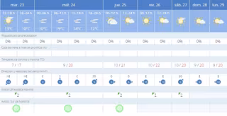 Para el 24 de enero, se mantendrá un clima estable sin precipitaciones. Los cielos estarán muy nubosos durante todo el día, con episodios de niebla tanto en las primeras horas como por la noche. Las temperaturas se situarán entre los 9C de mínima y los 20C de máxima, y la sensación térmica seguirá patrones similares. El viento predominará del sur y suroeste con una velocidad de 5 km/h. La humedad relativa será alta, alcanzando el 100% en las primeras horas de la mañana y por la noche, ofreciendo un día mayormente nublado con momentos de visibilidad reducida debido a la niebla.