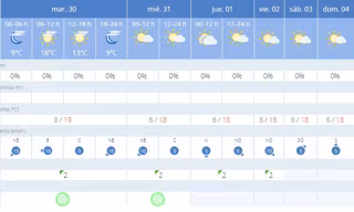 Para los días siguientes hasta el 2024-02-04, la tendencia muestra una baja probabilidad de precipitaciones, con cielos que variarán entre poco nubosos y nubes altas. Los vientos variarán en dirección, principalmente del este y noreste, con velocidades suaves a moderadas. Las temperaturas máximas se mantendrán en torno a los 18C a 19C, mientras que las mínimas serán de 6C a 8C.