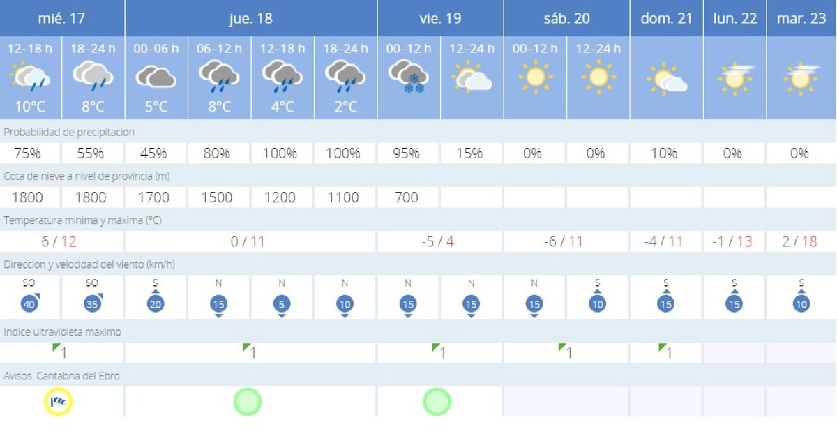 La AEMET avisa del tiempo en Reinosa para hoy, 17 de enero, y mañana, 18 de enero - AEMET