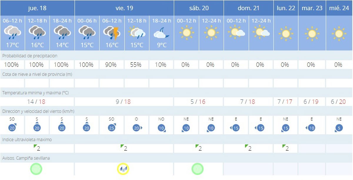 La AEMET avisa del tiempo en Sevilla para hoy, 18 de enero, y mañana, 19 de enero - AEMET