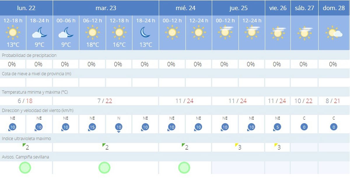 La AEMET avisa del tiempo en Sevilla para hoy, 22 de enero, y mañana, 23 de enero - AEMET