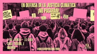 Las ONG climáticas reunidas en torno a la Alianza por el Clima han convocado una manifestación en la Calle Toledo, 1, a la altura con la Plaza Mayor de Madrid, este sábado 1 de junio a las 11:30 bajo el lema "En defensa de la justicia climática ¡No pasarán!".