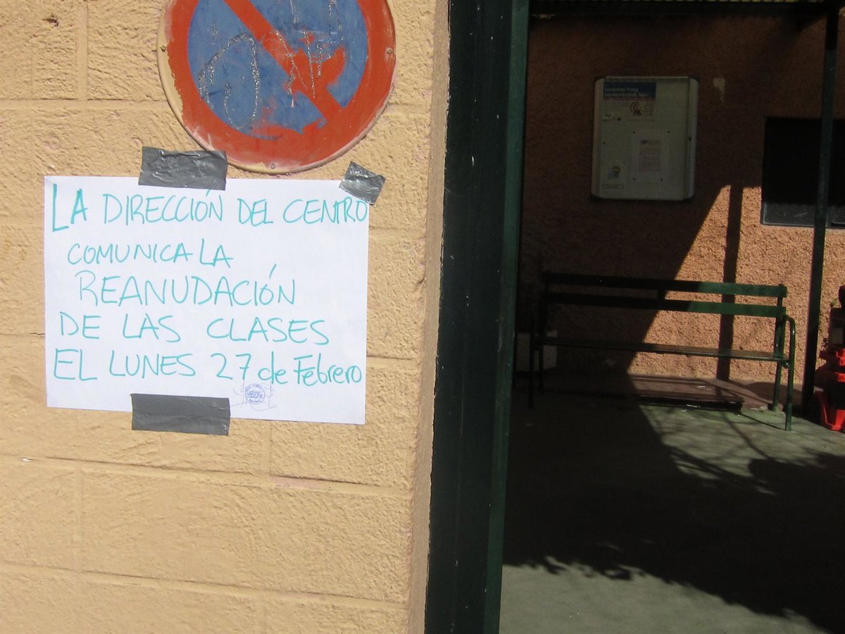 Trabajadores del centro colocaron el viernes al mediodía un cartel en la fachada informando de que las clases se reanudaban el lunes, después de que la Tesorería General de la Seguridad Social decidiera nombrar depositario de los bienes embargados a la sociedad responsable con el fin de que el centro pudiera continuar con la actividad.
