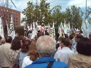 El acto, convocado por 60 asociaciones 'provida', ha arrancado al mediodía, aunque los manifestantes comenzaban a tomar posiciones pasadas las once en torno a una pancarta de 60x20 metros de dimensión y realizada por el Foro Español de la Familia, que, con el lema 'Todos tienen derecho a la vida', se elevaba sobre Isaac Peral pendida de unos globos amarillos.