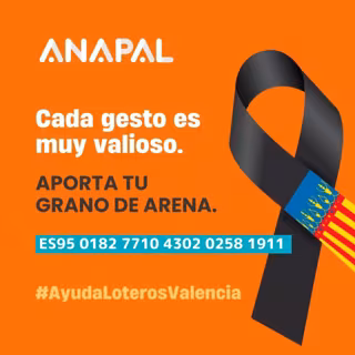 La Agrupación Nacional de Asociaciones Provinciales de Administradores de Lotería (ANAPAL) ha puesto en marcha una campaña de solidaridad para apoyar a loteros valencianos afectados por el paso de la DANA, con la que busca conseguir fondos para ayudarles a retomar su actividad habitual "lo antes posible".