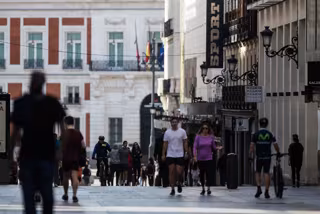 Congestión de personas caminando por la Calle Preciados de Madrid el segundo día de desconfinamiento durante la Pandemia Covid-19 que ha generado el Estado de Alarma en España. A 3 de Mayo, 2020 en Madrid, España - Joaquin Corchero / Europa Press