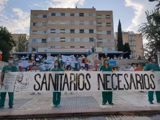 Este lunes, la plataforma 'Sanitarios Necesarios' convocó a las 20.00 horas, coincidiendo con el momento de los aplausos, a los trabajadores de la sanidad para que salgan a las puertas de sus centros sanitarios "a dar visibilidad a la situación de precariedad" con su silencio.