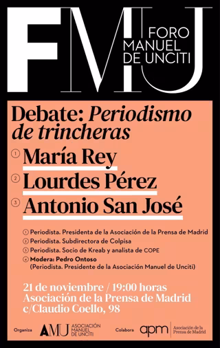 La Asociación Manuel de Unciti (AMU), con la colaboración de la Asociación de la Prensa de Madrid (APM), ha organizado el I Foro Manuel Unciti en el que distintos periodistas debatirán sobre el 'Periodismo de trincheras'.