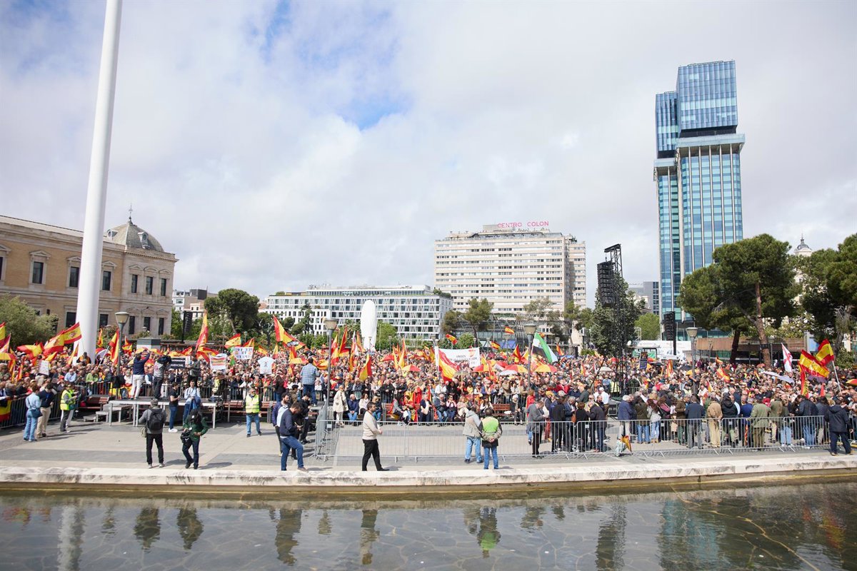 Cientos de personas durante una manifestación, en la Plaza de Colón, a 10 de mayo de 2025, en Madrid (España). Más de un centenar de asociaciones de la sociedad civil, aglutinadas en la Plataforma por la España Constitucional, han convocado una manifestac - Jesús Hellín - Europa Press