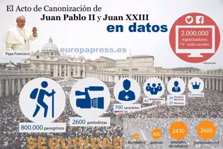 Roma ultima estos días los preparativos para el gran acto de canonización de dos papas este domingo, Juan Pablo II y Juan XXIII, que va a congregar a 800.000 peregrinos en la ciudad, al menos 93 delegaciones oficiales y 24 jefes de Estado.