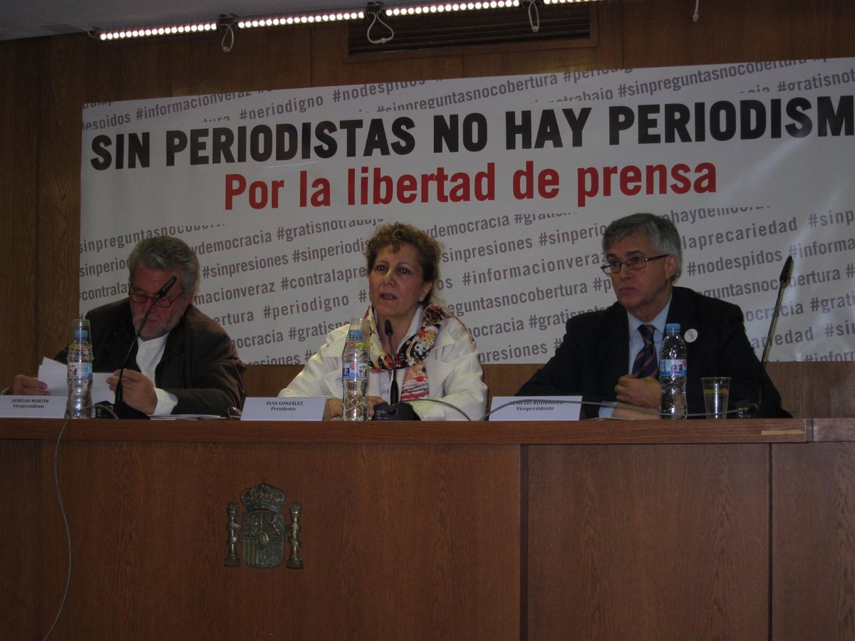 En este sentido, la presidenta de la FAPE, Elsa González, señaló en durante la presentación de la convocatoria, que lleva el lema 'Sin periodistas no hay periodismo. Sin periodismo no hay democracia', que actualmente el sector vive "las peores cifras de paro y precariedad que ha sufrido el periodismo en toda su historia".