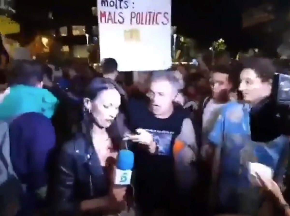 Este martes, varios manifestantes que participaban en la manifestación increparon a reporteras de TVE y Telecinco que cubrían la protesta. En concreto, a la periodista de TVE le increparon al grito de 'Prensa española manipuladora', mientras que, al terminar la marcha, un grupo también gritó 'Prensa española manipuladora' y algunos manifestantes lanzaron líquido a una reportera de Telecinco que informaba ante la cámara.