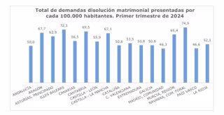Infografía del demandas de disolución por 100.000 habitantes. - CGPJ